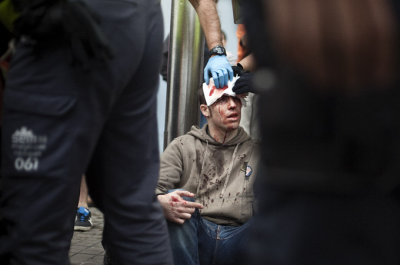 Pau Andaluz tras ser víctima de la actuación policial en Barcelona el 12 de octubre de 2012 | Foto: Robert Bonet
